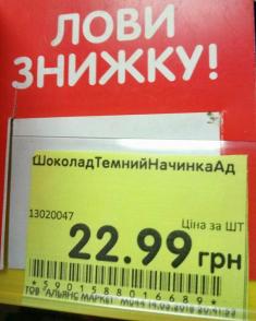 У мережі агазинів «Союз» (принаймні, в одному з них) продаються зі знижкою шоколадки з адовою начинкою.