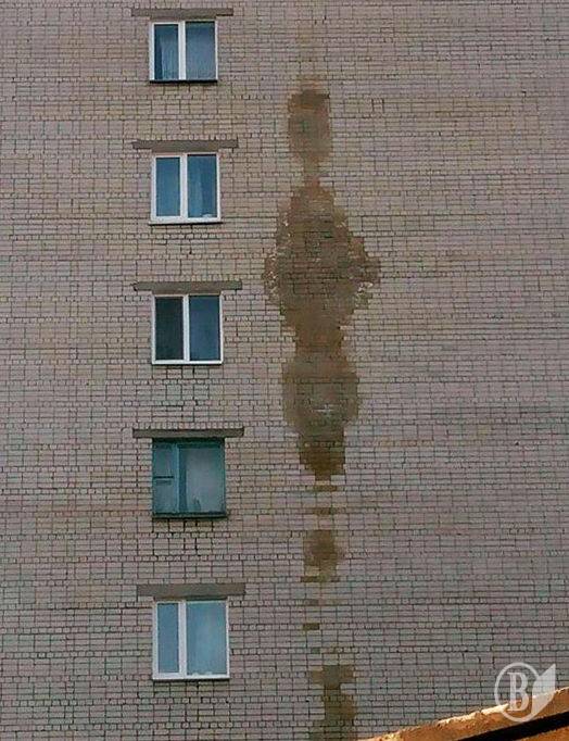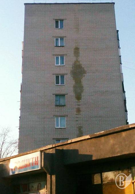 Лайно стікало по стіні будинку плямою на всі 9 поверхів