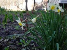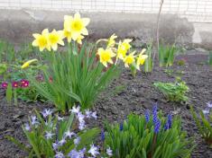 Справжні українці вулиці Корольова уже причепурили клумби під своїми будинками і тендітним первоцвітами, і сумними вранці ти бадьорими вдень нарцисами.
