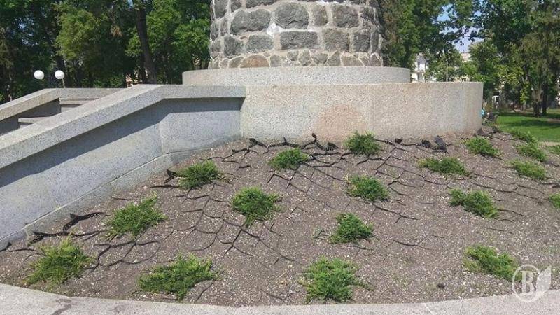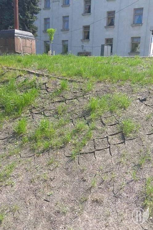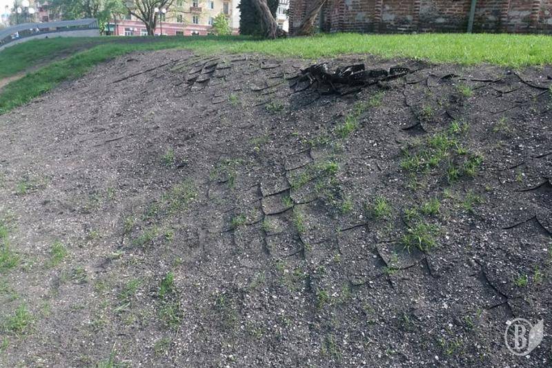 Чернігівці дивуються «гумовому скелету» газонів у сквері Хмельницького