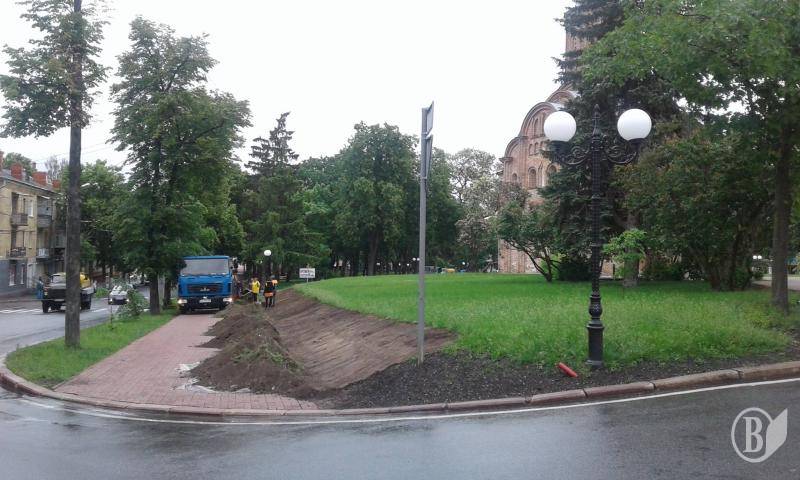 Там «обскубують» газон на пологих схилах, зокрема з боку вулиці Шевченка.