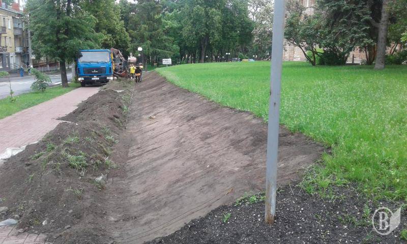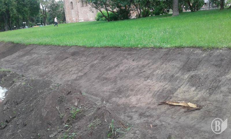 «Планова работа, закінчують влаштування газону, – повідомила Наталія Чусь, представник прес-служби міськради. – Без гумової арматури землю на схилі вимивало би ще сильніше. А так – разом з травою, яка підросте, буде і красиво і надійно».