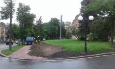 Знову щось пішло «не так» з газоном у багатостраждальному від реконструкції сквері ім. Хельницького в історичному центрі Чернігова.