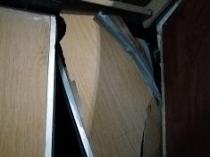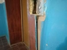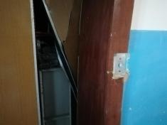 Хто і як їх туди заносив – таємниця. Але результати - на лице. «Вантажники» зірвали коробку входу в ліфт, погнули двері і виламали одну стулку вхідних дверей.
