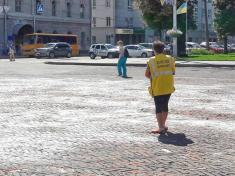 За словами фахівців, сіль за кілька днів приберуть і площа матиме звичний вигляд, а ріст рослин припиниться і їх коріння не руйнуватиме існуюче покриття.