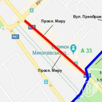 З 15 до 17 серпня тимчасово перекривається рух транспорту на ділянці проспекту Миру від перехрестя з вулицею Преображенською до перехрестя з вулицею Шевченка.