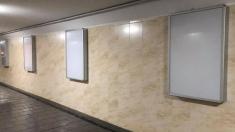В реконструйованому підземному переході на перехресті проспектів Чернігова – Миру й Перемоги – триває розвішування рекламних боксів схожих за форматом на вуличні «сіті-лайти».