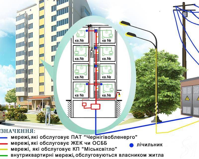 Де чиї дроти в багатоквартирному будинку – в інфографіці «Чернігівобленерго»