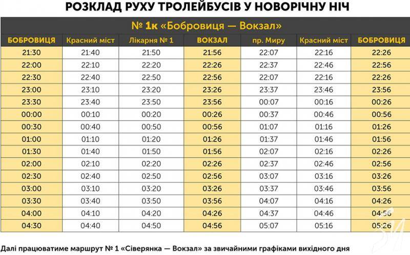 У новорічну ніч тролейбуси КП «Чернігівське тролейбусне управління» курсуватимуть від вечора 31 грудня і до самого ранку 1 січня.