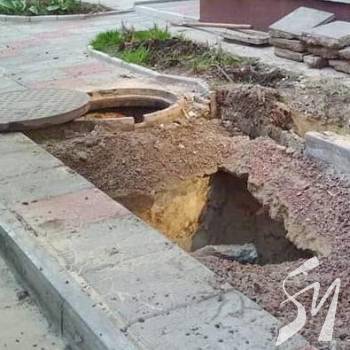 КП Чернігівводоканал виконує гарантійний ремонт каналізаційних мереж за рахунок забудовника. Вартість ремонту і конкретні причини утворення провалу ґрунту будуть відомі після закінчення робіт.