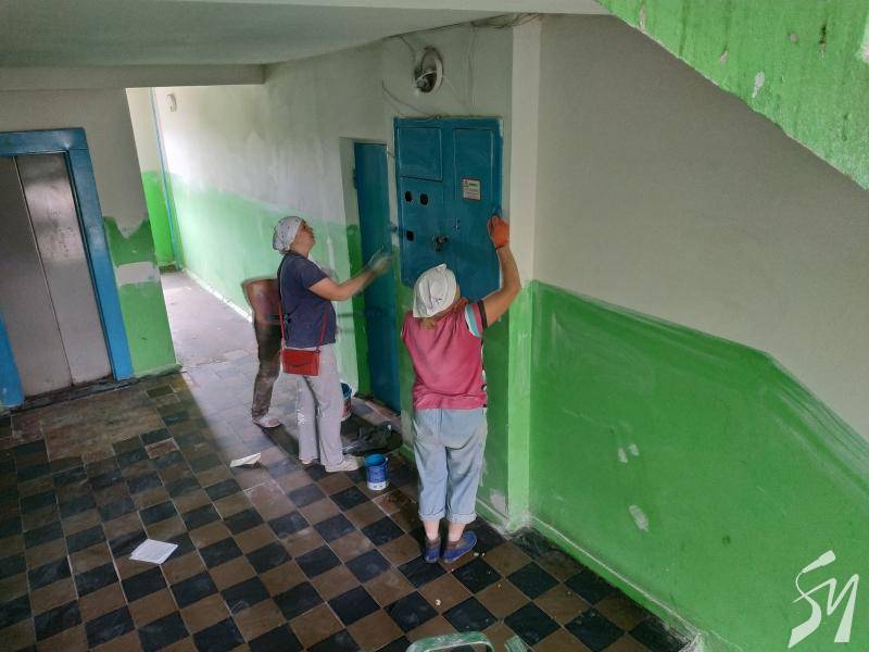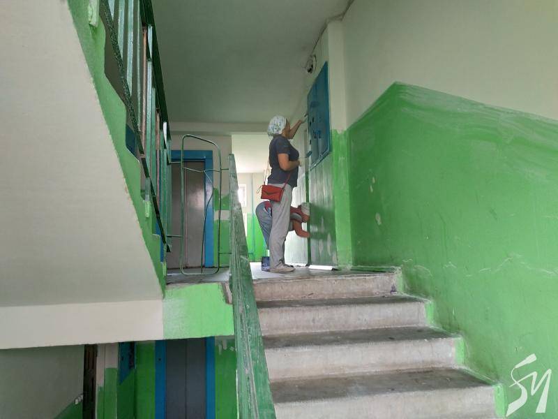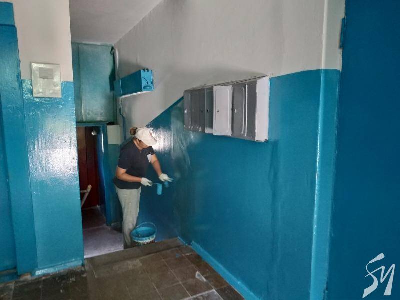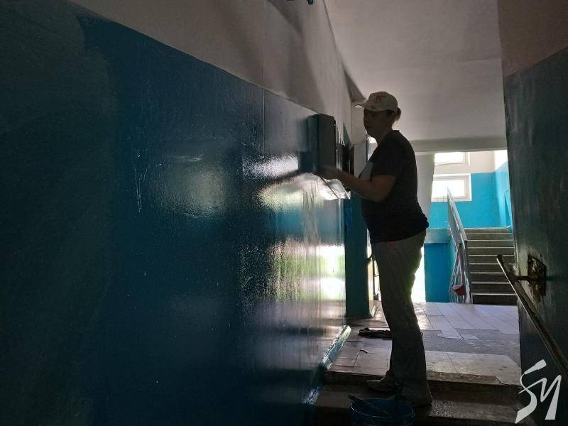 За день до того, у п’ятницю, 31 травня маляри ЖЕК-10 закінчили ремонт і нанесли останні штрихи блакитною фарбою.