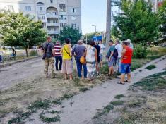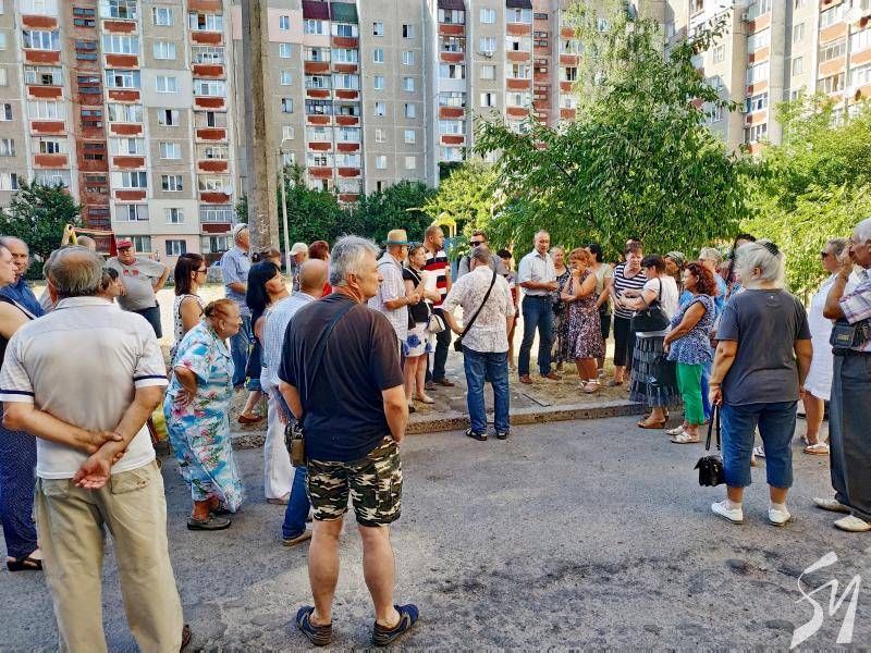 Там бригада працівників встановила контейнери в погодженому з жильцями місці. Але погодженому не з кожним особисто мешканцем навколишніх будинків. І почався «бунт». Місцеві жителі і «зальотні» не дали робітникам покласти плитку на майданчику.
