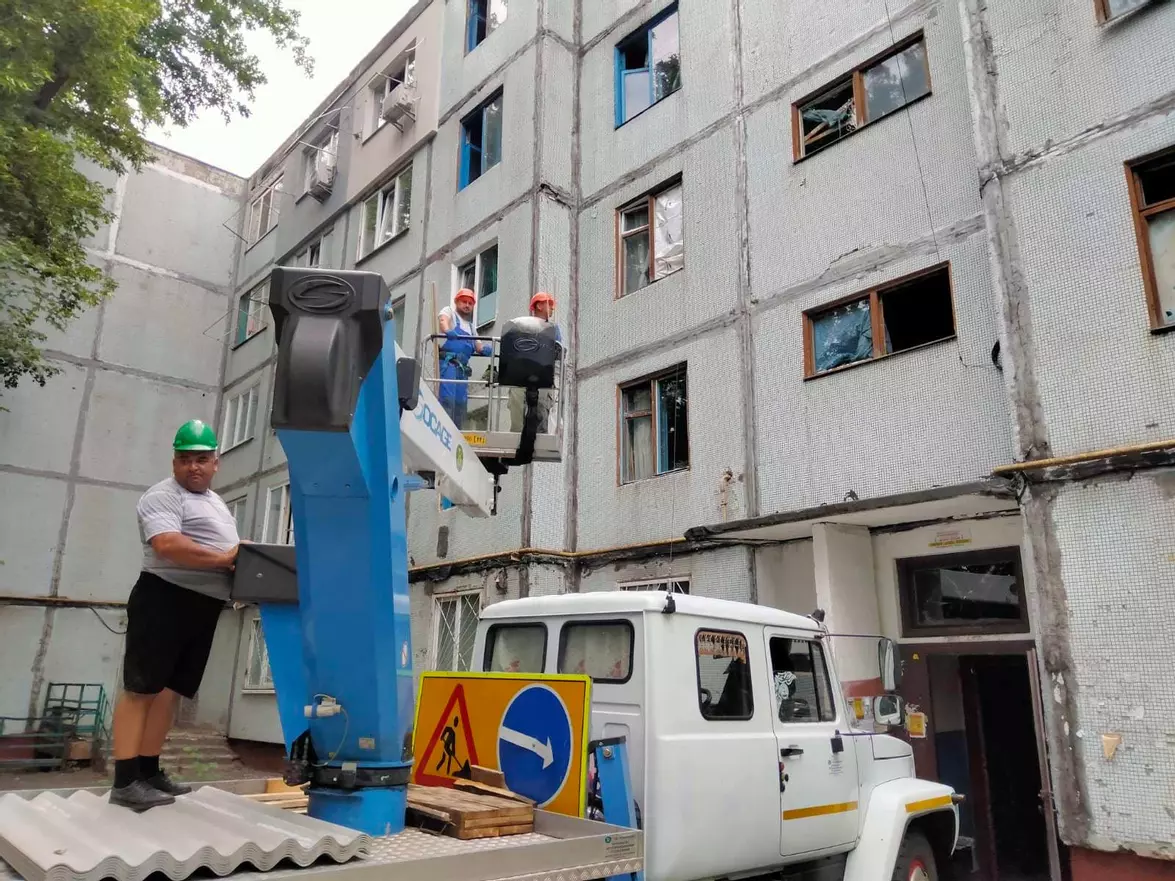 Сьогодні, 5 серпня, Олег Зярко із командою відновлює житловий будинок на вулиці Текстильників. Він та ще 13 комунальників проводять засклення у під’їздах. Олег Зярко каже: лише на сьогодні заплановано вставити більш як 50 вікон.
