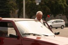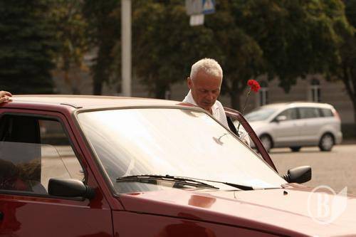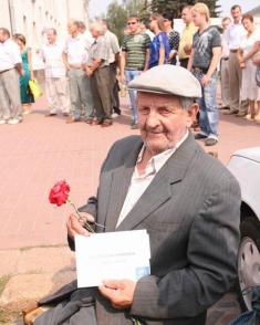 82-річний інвалід війни Михайло Андрійович Рамусь приїхав з Новгород-Сіверського району разом зі своєю сім’єю. Він уже двадцять років стоїть у черзі за автомобілем. Правда зараз він вже не зможе на ньому їздити без чиєїсь допомоги.