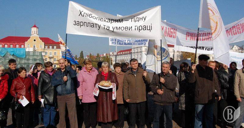 Сьогодні, 22 жовтня у Чернігові відбувся мітинг працівників хлібопекарської галузі. Хлібзаводи працюють зі збитком, обладнання у них старе, а працівники отримують маленьку зарплату.