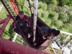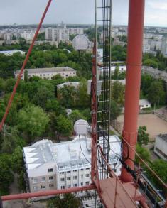 Мы должны проверять излучение, кроме того, вертикальность башни. Потому что было такое, что башня подобно Пизанской стала клониться (например, в Виннице), и тогда пришлось её прямить, чтобы не упала. Амплитуда колебаний верхушки телебашни в сильный ветер по расчётам может достигать пол метра. И даже когда стоишь на башне в сильный ветер, это ощутимо. Особенно, когда ветер стабильно дует в одном направлении, а затем резко ослабляется, и перила толкают тебя.