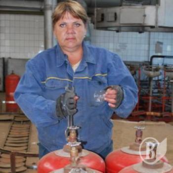 На фото вище: приймальник балонів Надія Рогова герметизує кожну ємність за допомогою термоплівки – така пломба засвідчує, що наповненим балоном ніхто не користувався. Фото: Таня Чичкан.