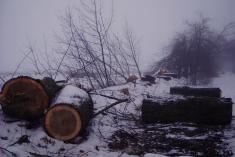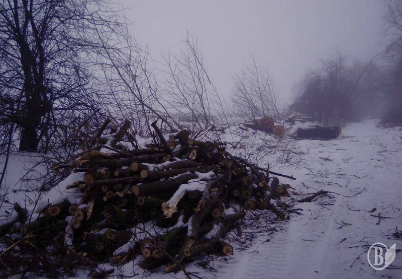 Щоправда, з дороги вирубку дерев на місці колишнього колгоспного саду можна було й не помітити. Вона відбувалася подалі від людських очей і це дійсно наводило на думку про незаконність цієї справи. Щодо лісополоси за селом – спиляні стовбури не довелося шукати. На той момент там також було тихо та безлюдно. Однак ми побачили ще більше спиляних дерев – можливо, їх повалили перед Різдвом, але не встигли вивезти. Деякі зі стовбурів були пронумеровані.