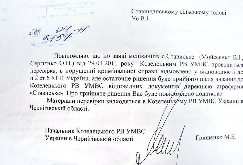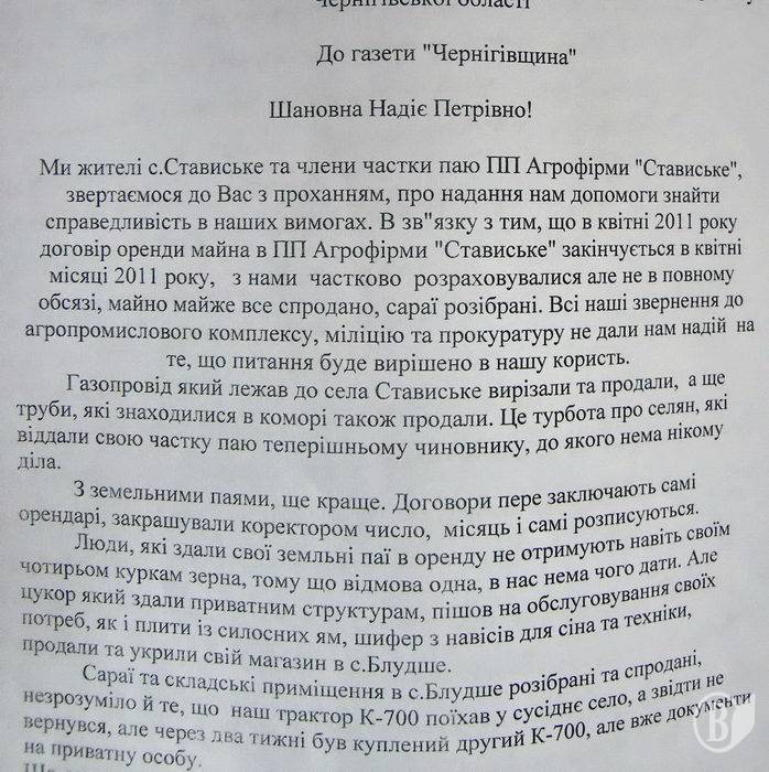 Жителі села Ставиське Козелецького району – пайовики сільгосптовариства, – звернулися до «Чернігівщини» з розповіддю про «темні справи».