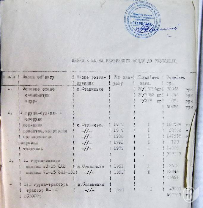 – Правду селяни пишуть. Майна з території ПОСПу – практично «нуль», – підтвердив сільський голова. – Зараз Михайло Михед начебто почав частково скуповувати права на майно. Але ані зборів пайовиків, ні уповноважена особа не переобиралася. Сараї, ферму в Блудшому – розвезли, рознесли. А на тракторному стані було скільки техніки! Залишилися, може, кілька тракторів і пара машин. Договір з ПОСП про оренду майна 19 квітня 2001 року укладався на десять років. Навесні він закінчився, а користування майном продовжується. І з землею ще проблема: люди звертаються до мене, приносять договір оренди землі, який теж закінчився. А вони, в агрофірмі, позамальовували числа коректором і користуються далі.