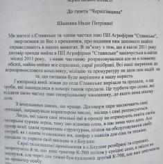 – Там жодного слова правди немає. Ці люди підписувалися під іншим, а копія аркуша з підписами прикладена до іншого листа. Крім того, 25 осіб – це не показник проти п’ятисот. Просто одній людині директор неугодний – Василю Мойсієнку. Збори проводяться щороку. Майно викуплене і гроші людям роздані. Зерно видане за два роки. Відомість у коморі лежить. Хто не прийшов отримувати, ті й підписали, а по дворам, звісно, ніхто не розвозив. Я дружина голови. Якби мене не було 12 років біля нього, його б уже «з’їли».