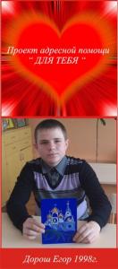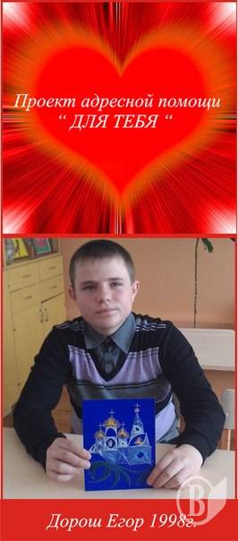 За словами педагогів, усі дітки в цій школі – особливі. Однак Єгору більше, ніж комусь іншому, потрібна допомога. Він практично не чує (туговухість 4 ст.), мати хлопчика загинула, коли він був ще зовсім маленьким. Батько, на жаль, не бере участі у житті та вихованні сина, не цікавиться його справами. До того ж, хлопчик росте хворобливим, через йому що доводиться пропускати чимало уроків. Апарат дозволить Єгору чути звуки, збільшувати словниковий запас, отримати гарну шкільну освіту.