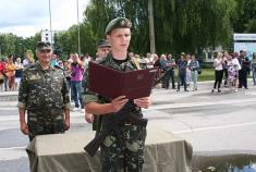 Під час урочистостей виконуючий обов’язки завідуючого кафедри військової підготовки полковник Йонас Андруліс поздоровив усіх студентів з закінченням навчальних зборів та привітав з прийняттям Військової присяги.