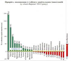 Водночас, тенденції до зростання інвестицій дозволяють говорити про перспективу відновлення промислового зростання. Так, обсяги капітальних вкладень за січень-березень 2013 року зросли у 1,5 разів, а за І півріччя – на 22,2%. Також збільшились обсяги прямих іноземних інвестицій на 13,5% до початку року.