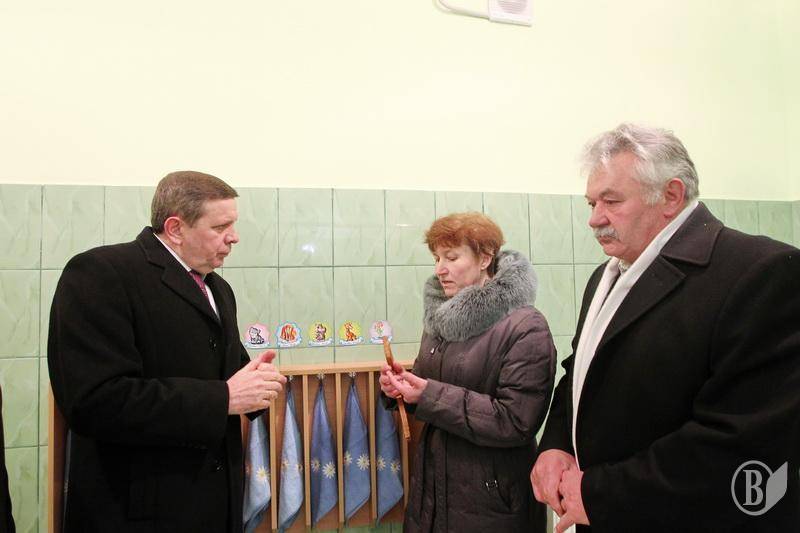 Після урочистого відкриття керівник області ознайомився з матеріально-технічною базою дошкільного навчального закладу «Перлинка», оглянув кімнати, поспілкувався з вихователями та подарував садочку телевізор.