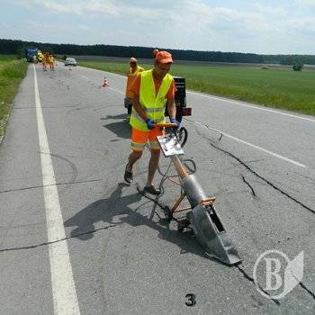 Служба автомобильных дорог в Черниговский области для поддержания дорог в надлежащем состоянии применяет технологию заливки трещин.