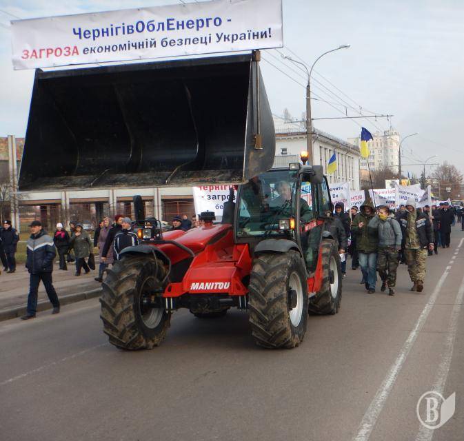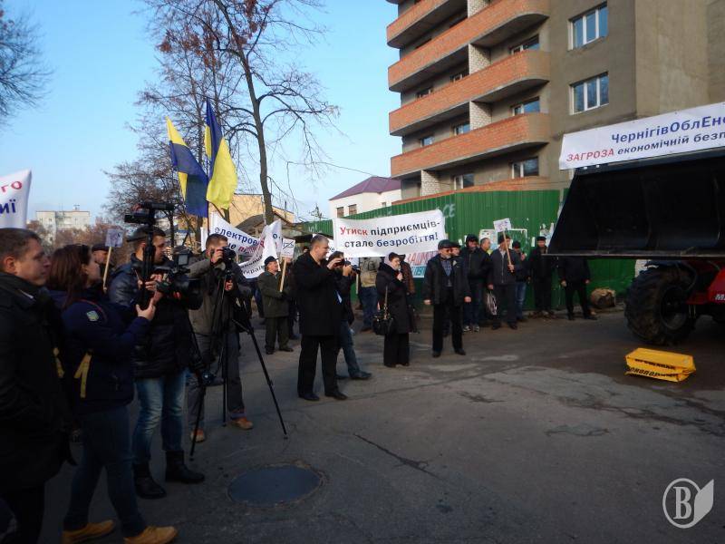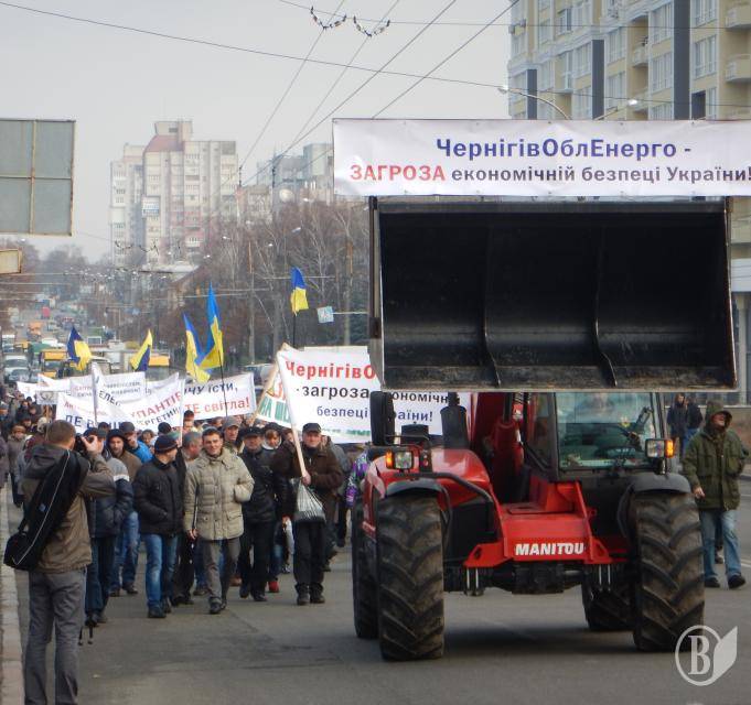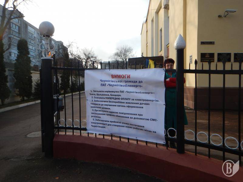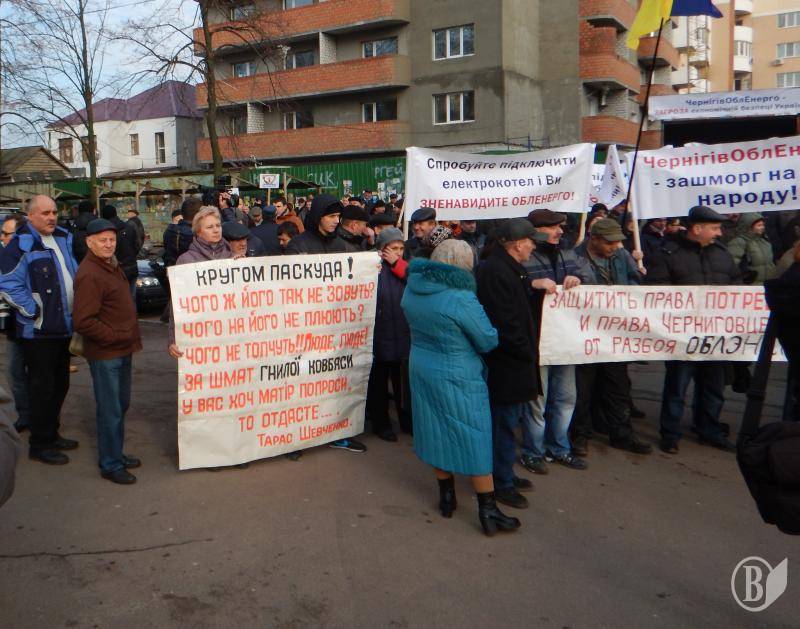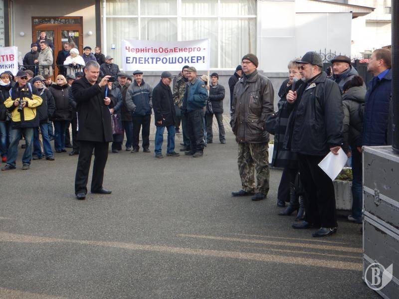 Організатори протесту озвучили вимоги до «Чернігівобленерго», розповіли, що ця компанія належить олігархам. Вони, як овечою шкурою прикриваються фірмами, які зареєстровані на Кіпрі, а насправді належать російському олігарху Григоришину та українському – Коломойському.