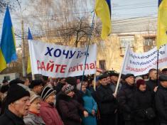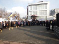 Представники громадських організацій, профспілок Чернігівщини, спільного представницького органу сторони роботодавців Чернігівської області, пенсіонери, жителі не тільки з міста, а й із-а його меж, зібралися під стінами Театру ляльок у Чернігові – напроти адміністративного будинку міських електромереж по проспекту Перемоги, 126.