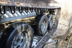 Недоліки гусениць – гучність і знос траків – автори проекту усунули на корню, застосувавши гумовотканинні стрічки замість гусеничних ланцюгів і пневматичні опорні катки.