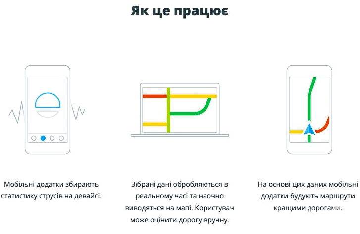 Благодаря их дополнению маршрут выстраивается с учетом состояния дорожного покрытия. Сама же карта качества автодорог создается согласно данным, собранным в автоматическом режиме.
