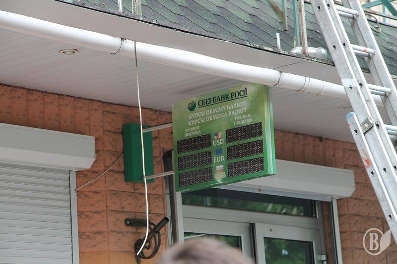 Черниговцы по-разному отнеслись к тому, как на отделении «Сбербанка России» на остановке пассажирского транспорта «гостиница Украина» стали снимать вывески.