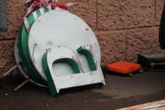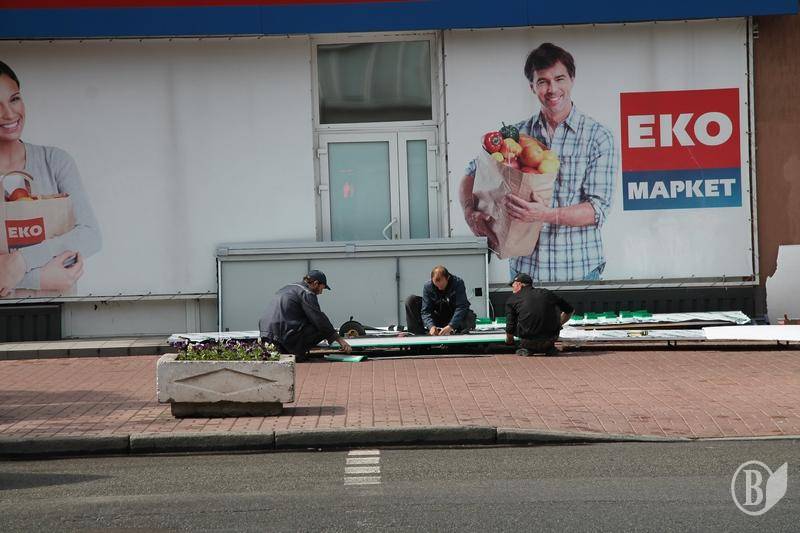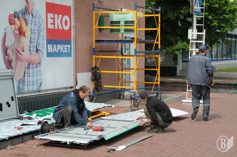 Именно в интересах последней версии говорила новенькая вывеска, которая лежала на земле на проспекте Победы, 100-а.
