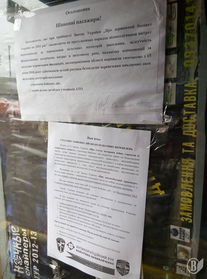 Пассажиры - участники АТО получили «Памятки участнику боевых действий относительно льготных перевозок». Памятки также закрепили в салонах маршруток, автобусов и разместили в диспетчерских пунктах и кассах автостанций.