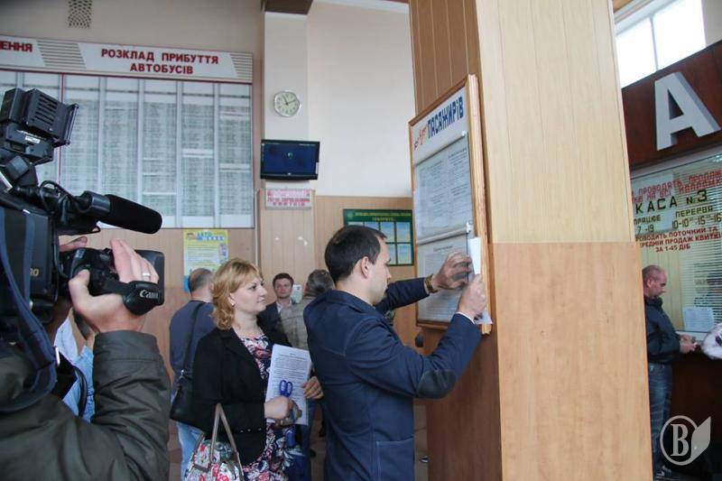 Активисты общественных организаций «Щит 41», «Антикоррупционный Рух» и проекта «Армия Достоинства», бойцы АТО вместе с журналистами посетили автостанции № 1 у железнодорожного вокзала, №2 рядом с центральным рынком и № 3 около рынка «Нива».