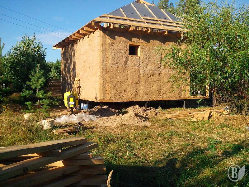 То есть, это дом-мазанка, построенный по украинской традиционной технологии, с использованием соломы и глины, которую мы несколько рационализировали. То есть, делаем не самановые дома, как в древности. Мы не смешиваем строительные материалы, а строим деревянный каркас с ребрами жесткости, который заполняем блоками из прессованной соломы. Последние с обеих сторон вымазываем глиной слоем в несколько сантиметров. Такое жилье считается экологическим и благоприятным для организма, безвредным».
