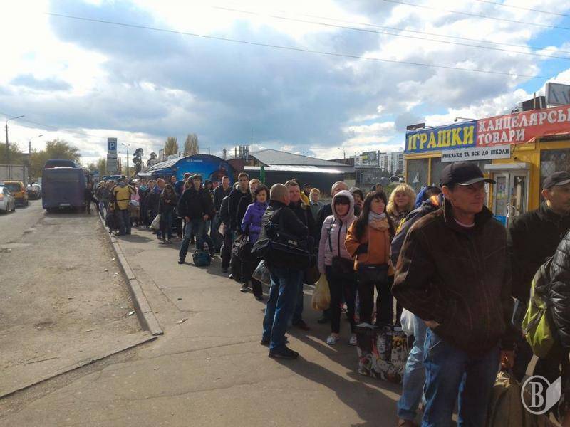 Київ, станція метро «Чернігівська». Понеділок, 16:00. На Прилуки стоять дві сотні осіб.