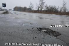 На автодорозі міжнародного значення М-01 Київ – Чернігів – Нові Яриловичі на замовлення Служби автомобільних доріг у Чернігівській області підрядне підприємство ДП «Чернігівський Облавтодор» 7 грудня розпочало аварійний ямковий ремонт холодними асфальтобетонними сумішами.