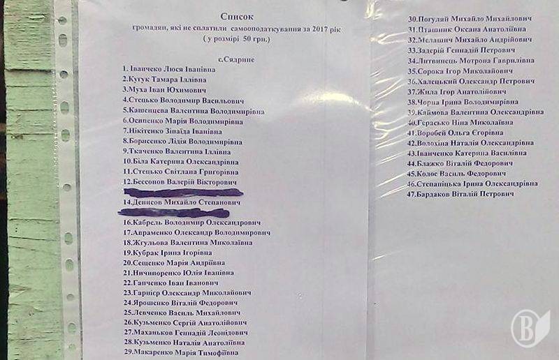 Серед таких членів громади, що не змогли сплатити в минулому році й "вісять на дошці пошани", що біля староства, депутат об'єднаної громади, офіцер поліції Сорока Ігор Миколайович. У списку неплатників він під номером 35.