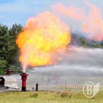– Роботи, що проводились на цих навчаннях – були максимально наближені до тих робіт, що проводяться в екстремальних умовах. Подавався та запалювався газ, збивали полум’я, проводили роботи з наведення обладнання, із заміни несправних засувок тощо. І, звісно, всі ці роботи проводили під тиском, а це дуже небезпечно, – розповів Начальник Полтавської воєнізованої частини по попередженню та ліквідації відкритих нафтових і газових фонтанів ПАТ «Укрнафта» Роман Угринчук.