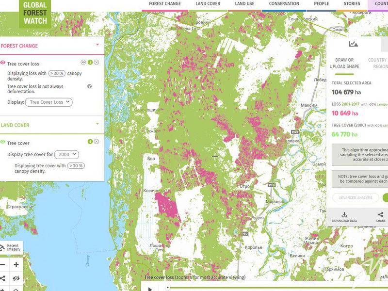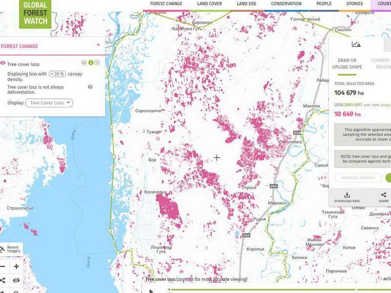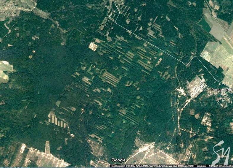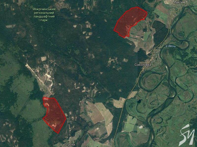 Во многих местах – возле сел Косачевка, Отрохи, Сорокощичи, пгт Гончаровское, – лес представляет собой решето с бесконечными следами сплошных рубок, каждая из которых тянется на несколько километров правильними прямоугольниками.