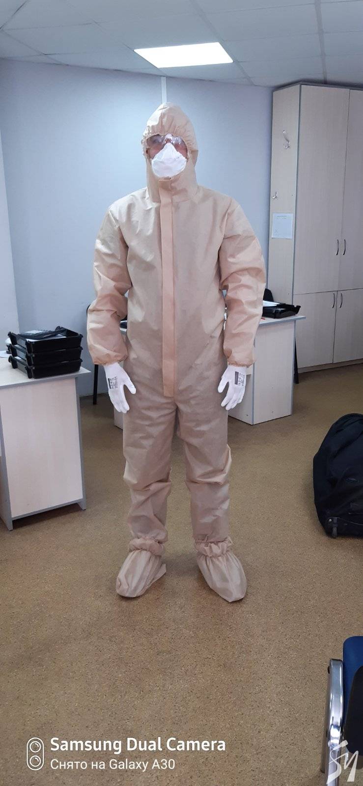 Наша компанія займається засобами захисту на підприємстві, – розповідає Сергій Васильович, – зокрема, захист голови, органів дихання, тіла, рук і ніг. Наша мета – зберігати життя і здоров’я людей, робити труд максимально безпечним. Два тижні тому, в умовах коронавірусної небезпеки, ми переорієнтувалися на виготовлення захисник масок з підбондової марлі, комбінезони, бахіли, рукавички тощо. Ми їх виготовляли і раніше, але зараз вони стали пріоритетними. Для цього ми навіть написали листи клієнтам, зокрема і компанії «Кока-кола», що ми переносимо терміни своїх зобов’язань по доставці замовлень, у зв’язку зі збільшенням обсягів виробництва засобів захисту.