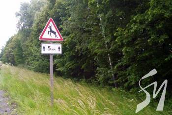 П’ять дорожніх знаків «Дикі тварини» з відповідними інформаційними табличками «Зона дії» встановлені на автодорогах міжнародного та державного значення Чернігівської області.