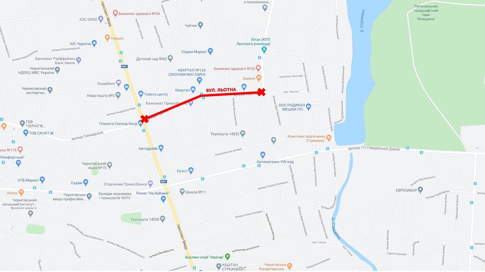 У Чернігові перекриють рух на вулиці Льотній та залізничний переїзд «Айстра»