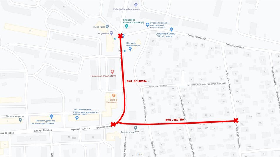 Для проведення ремонтних робіт у Чернігові перекриють рух автотранспорту на двох ділянках вулиці Льотна та залізничному переїзді «Айстра» на вулиці Ціолковського.