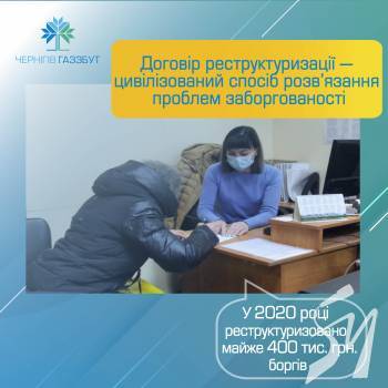 Так, протягом 2020 року ТОВ «Чернігівгаз Збут» було реструктуризовано боргових зобов’язань майже на 400 тисяч гривень. У поточному році договорів уже укладено на суму більше 97 тисяч гривень.