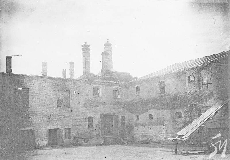 — зруйнована будівля старого пивзаводу на вулиці Київській після війни, де асобоз косив траву;